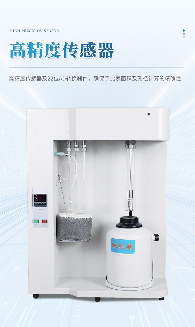 多個(gè)高精度的傳感器及22位的AD轉(zhuǎn)換器件,確保了比表面積及孔徑計(jì)算的精確性。