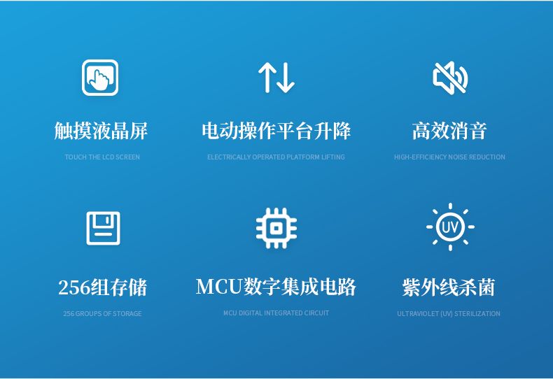 7.設備配置電動操作平臺升降、 LED 照明系統、紫外殺菌功能;