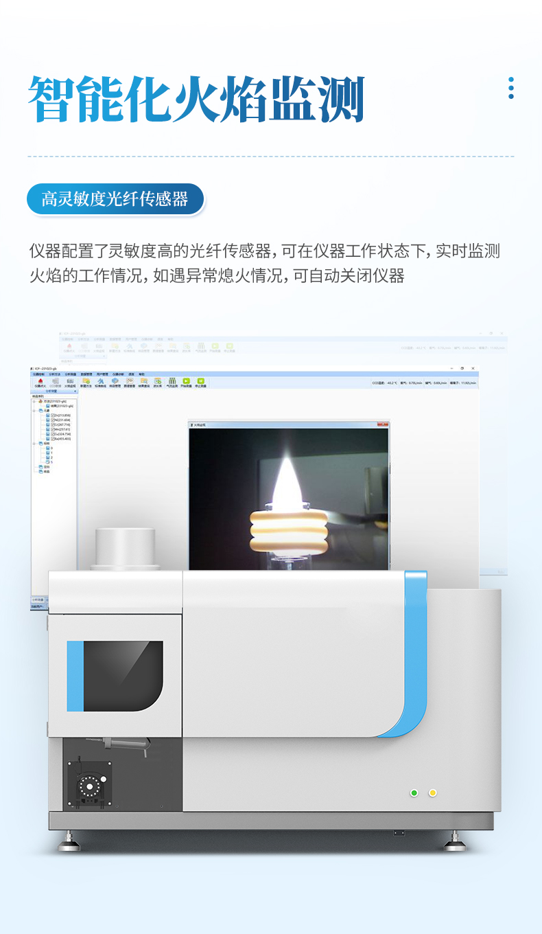 儀器配置了靈敏度*的光纖傳感器,可在儀器工作狀態下,實時監測火焰的工作情況,如遇異常熄火情況,可自動關閉儀器。