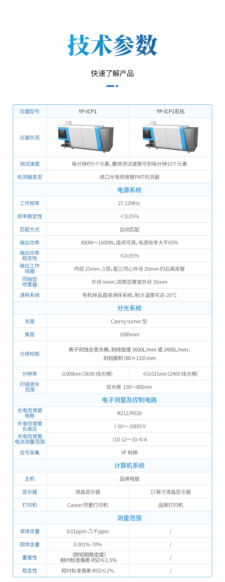 測(cè)試速度: 單個(gè)譜線 CID 讀出時(shí)間僅需 2ms,20s內(nèi)可實(shí)現(xiàn)所有元素的測(cè)量