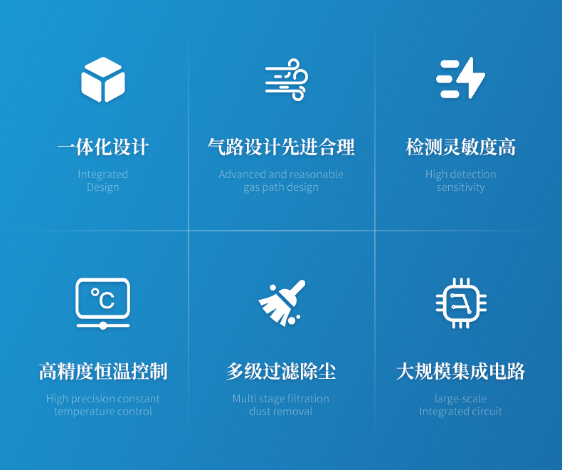 5、恒溫:整個氣室進行恒溫控制,保證分析氣溫度恒定,確保測量精度,采用了溫度補償型半導體檢測器,保證儀器受外界影響很小,基線很穩。