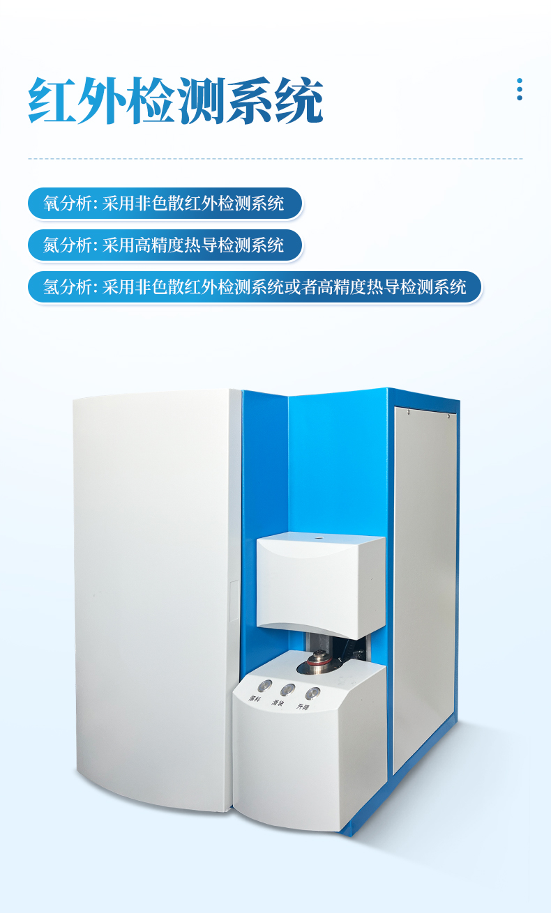 1、氧分析采用非色散紅外檢測系統;氮分析采用高精度熱導檢測系統;氫分析采用非色散紅外檢測系統或者高精度熱導檢測系統。
