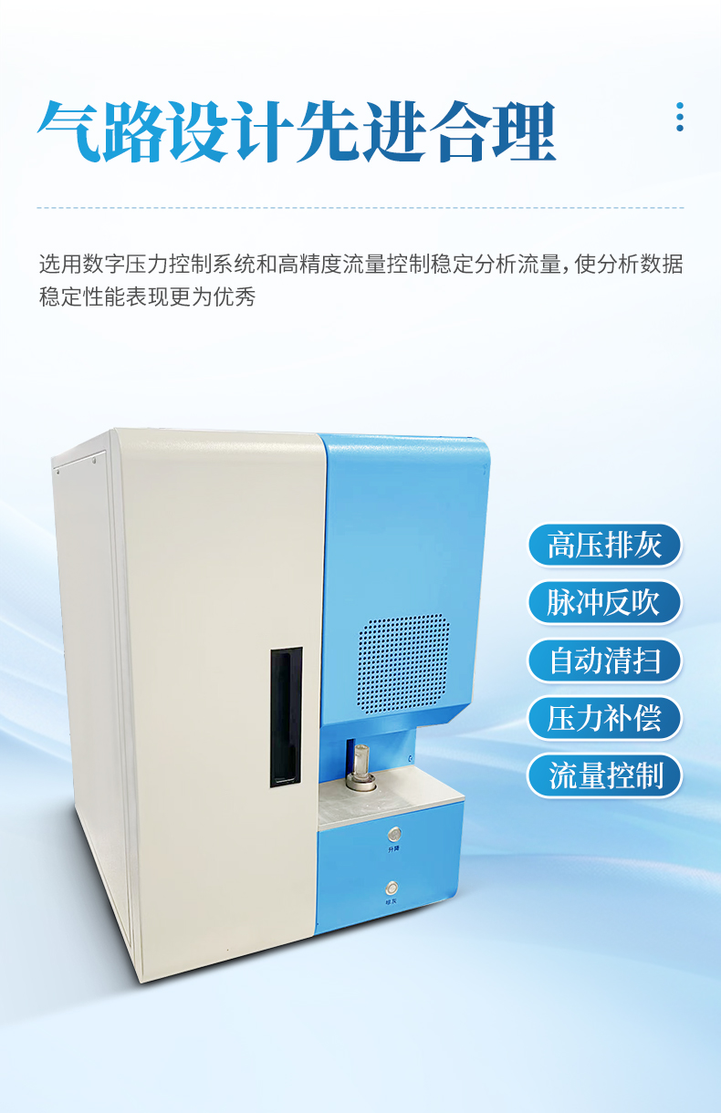 2、進樣系統設計上采用開放式,其優點為污染物從爐頂排出,不進入系統 ,操作方便,對系統密封要求不高. (采用封閉式,氣路通過一個價格昂貴的六通閥來控制,內部脫出。(有的公司進樣裝置復雜,有兩個汽缸,如樣品卡住,需把汽缸打開,很難取出)。采用微流量傳感器達到高精度流量控制,將分析氣流變化對分析帶來的影響降到了最低。氣轉換都通過此閥, 使得該閥易壞,灰塵等污染物也容易帶入系統內部)。這種進樣裝置簡單,且可自動進樣,萬一樣品卡住了,容易取出。