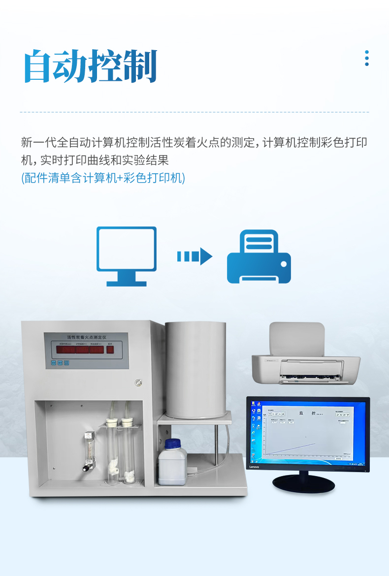 全自動(dòng)活性炭著火點(diǎn)是我公司最新研發(fā)的新一代全自動(dòng)計(jì)算機(jī)控制活性炭著火點(diǎn)的測(cè)定儀器,具有計(jì)算機(jī)軟件界面清晰,表現(xiàn)全面,操作簡(jiǎn)單的特點(diǎn),符合“GBT7702.9煤質(zhì)顆?;钚蕴吭囼?yàn)方法-著火點(diǎn)的測(cè)定”國(guó)標(biāo)要求。活性炭著火點(diǎn)測(cè)定儀軟件自帶數(shù)據(jù)庫(kù)功能,實(shí)驗(yàn)過程自動(dòng)記錄各個(gè)時(shí)間點(diǎn)相對(duì)應(yīng)的溫度點(diǎn),使用者可實(shí)驗(yàn)后對(duì)當(dāng)前實(shí)驗(yàn)活性炭的著火點(diǎn)特點(diǎn)進(jìn)行數(shù)據(jù)分析。