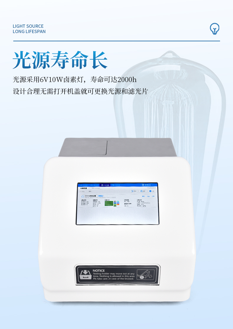 光源壽命長(zhǎng): 光源采用6V10W鹵素?zé)簦瑝勖蛇_(dá)2000h;