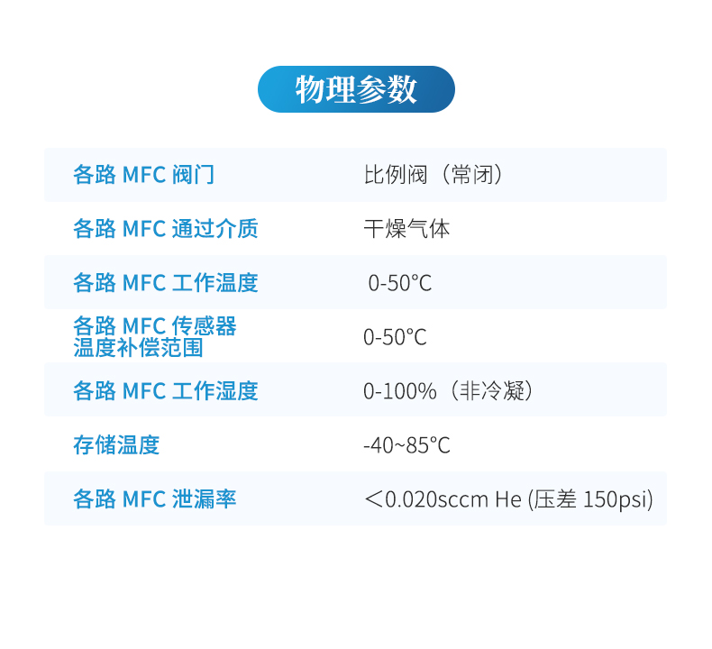 各路 MFC 工作濕度 0-100%(非冷凝)