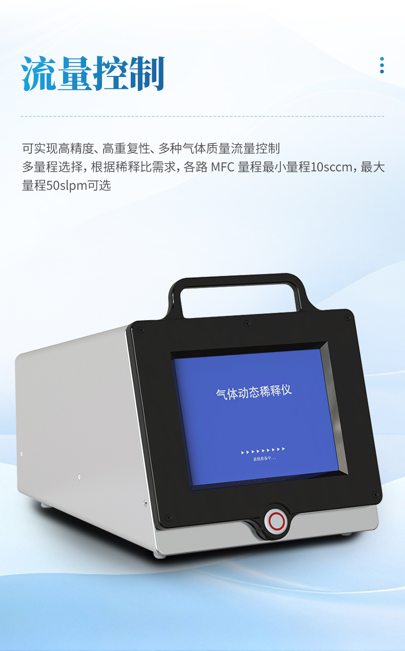 動態稀釋儀內部配置了高精度質 量流量控制器(MFC),各路 MFC 標配高精度傳