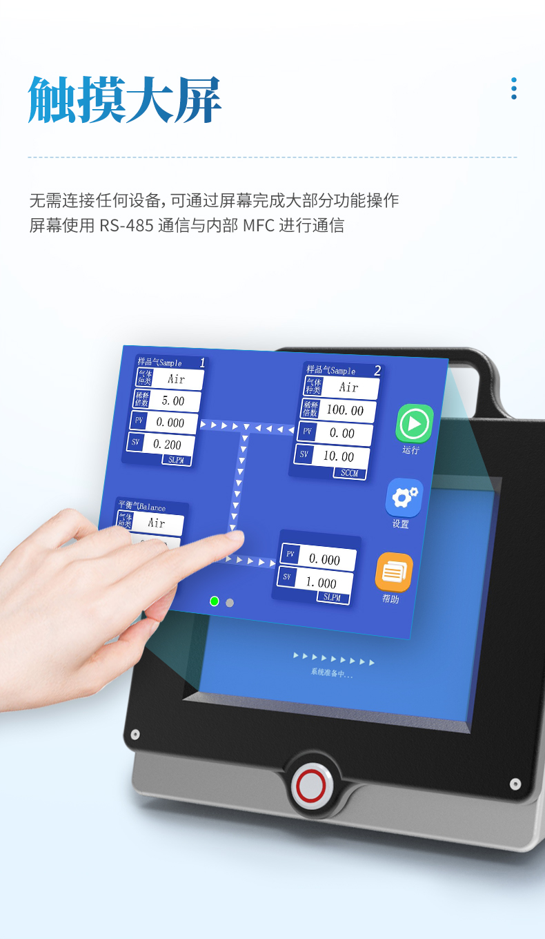 多種量程選擇 ---根據稀釋比需求各路 MFC 量程最小量程 10sccm,最大量程 50slpm 可選。