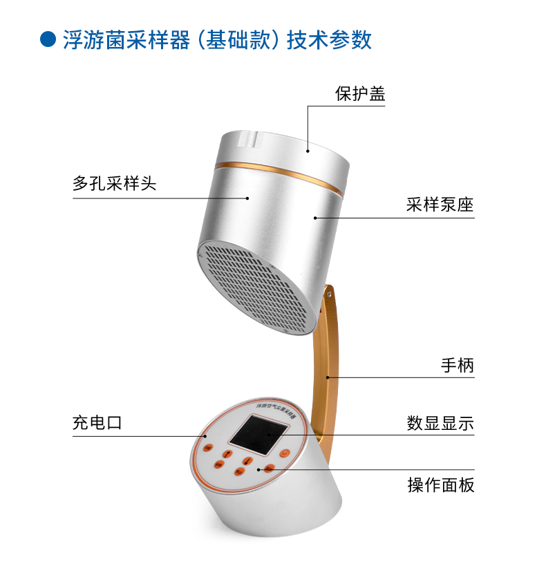 本儀器結構獨特新穎,分上下兩部分,上部分采集口和采樣座及氣泵,下部分控制器及電池。采樣口和外殼采用優質航空鋁制造,表面閉孔處理,便于使用前的滅菌消毒。本儀器功能強大,采樣量大,收集效率高,性能穩定,操作簡便,達到國際同類產品先進水平,是各制藥廠、醫院、生物制品、食品加工、公共場所的檢測部門理想的浮游塵菌濃度采集器。