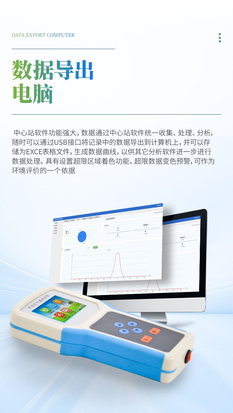 采用一體化結(jié)構(gòu)設(shè)計,內(nèi)置GPS模塊,4G模塊,外置SD卡,能準(zhǔn)確的測量出被測地點的地理信息,界面除顯示所測環(huán)境參數(shù)、存儲數(shù)據(jù)外,還可顯示測點的經(jīng)緯度。通過內(nèi)置的GPRS一鍵上傳被測點的環(huán)境因子測量數(shù)據(jù)等。同時還可以通過外置SD卡直接把數(shù)據(jù)導(dǎo)出到電腦上。(可選)