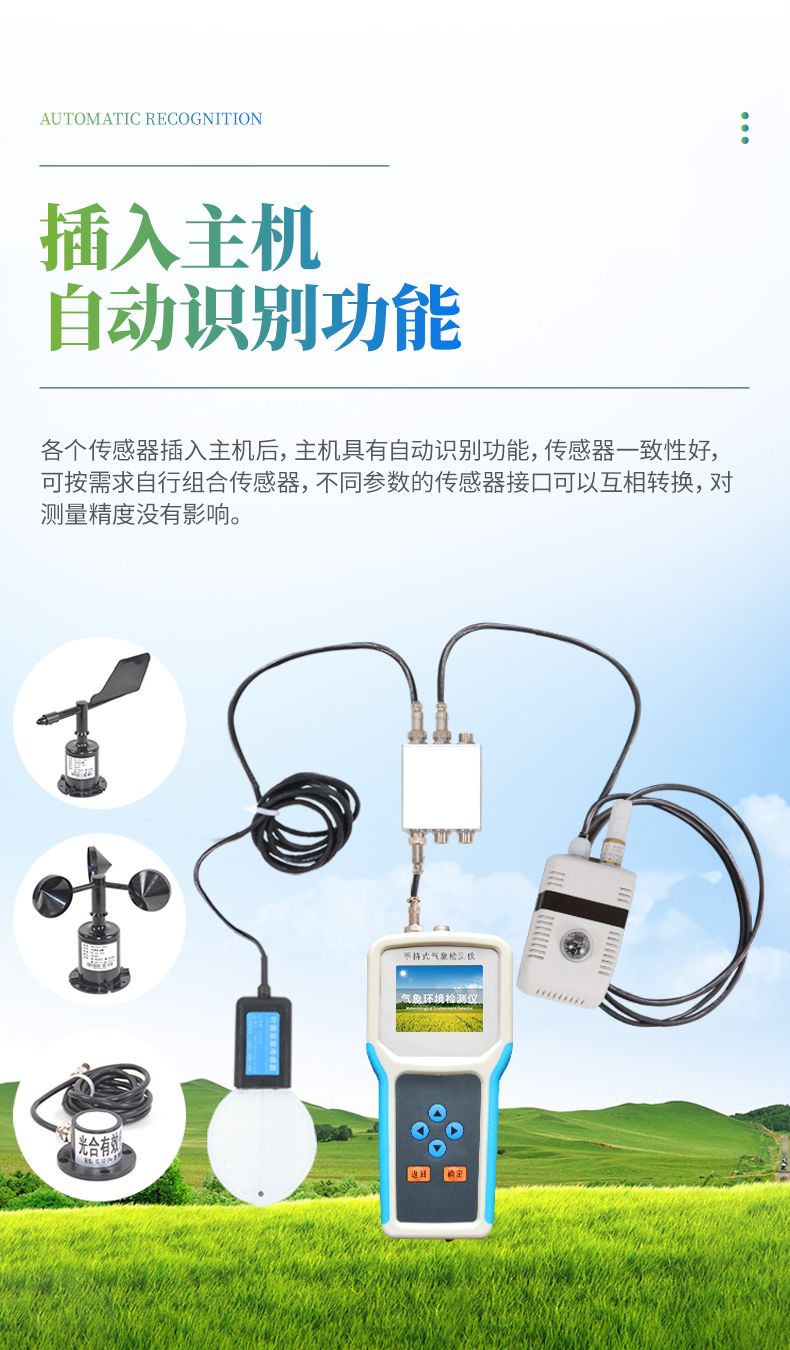 各個傳感器插入主機后,主機具有自動識別功能,傳感器一致性好,可按需求自行組合傳感器,不同參數的傳感器接口可以互相轉換,對測量精度沒有影響。