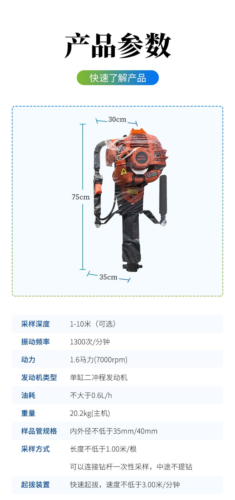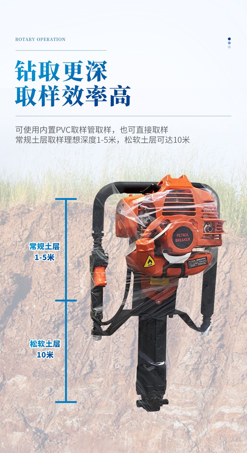 ● 常規(guī)土層取樣理想深度1-5米,松軟土層可達(dá)10米!