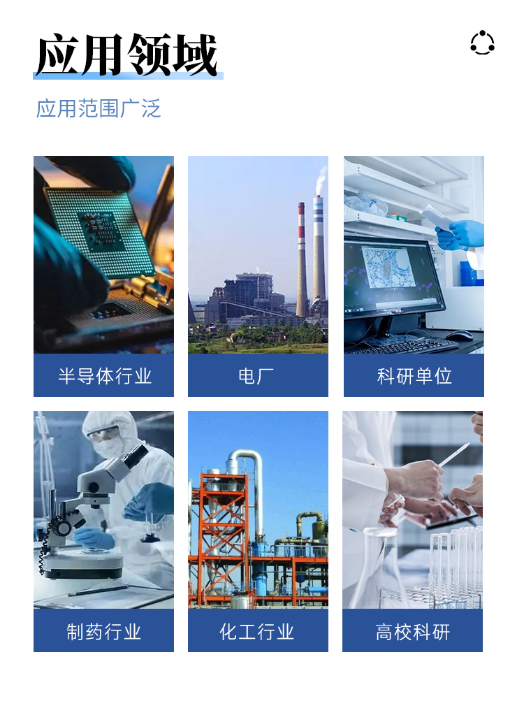 3、在線監(jiān)測制藥工業(yè)的制水系統(tǒng)、半導體工業(yè)的超純水制備系統(tǒng)和晶片工藝過程、電廠去離子水制備過程等。