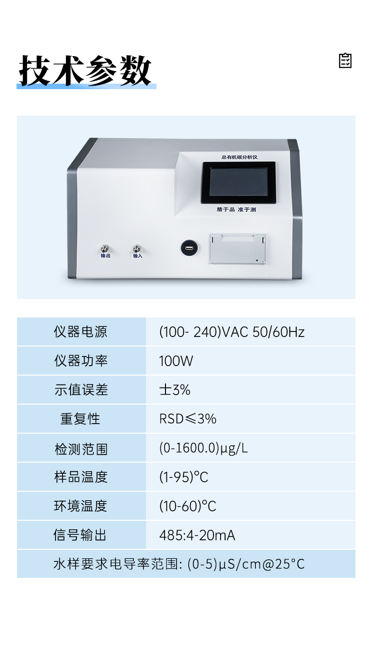 1、檢測制藥工業(yè)中純化水、注射用水和高純水中總有機碳的濃度;