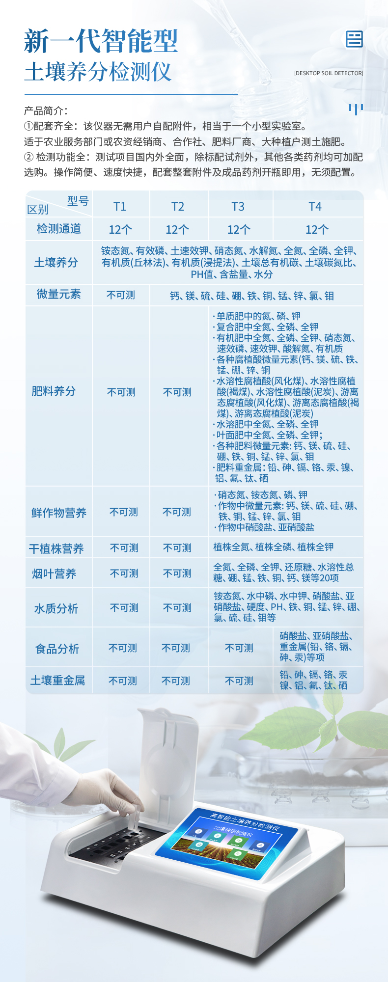 3、鮮作物營(yíng)養(yǎng):●作物硝態(tài)氮、作物銨態(tài)氮、作物磷、作物鉀;●作物中微量元素:作物鈣、作物鎂、作物硫、作物硅、作物硼、作物鐵、作物銅、作物錳、作物鋅、作物氯、作物鉬;●作物中硝酸鹽、亞硝酸鹽。