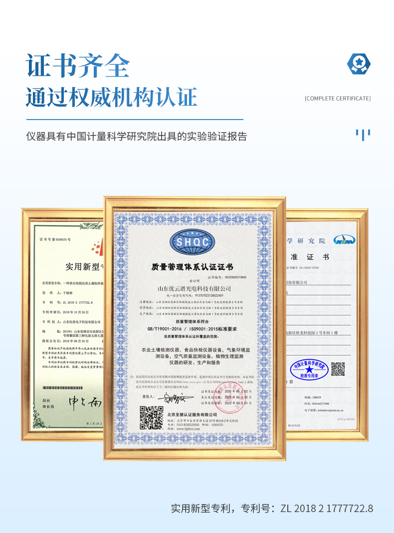 ★4、檢測(cè)過(guò)程中內(nèi)置校準(zhǔn)功能,智能恒流穩(wěn)壓,光強(qiáng)自動(dòng)校準(zhǔn),確保檢測(cè)準(zhǔn)確度,取得中國(guó)計(jì)量科學(xué)研究院的《校準(zhǔn)證書(shū)》。