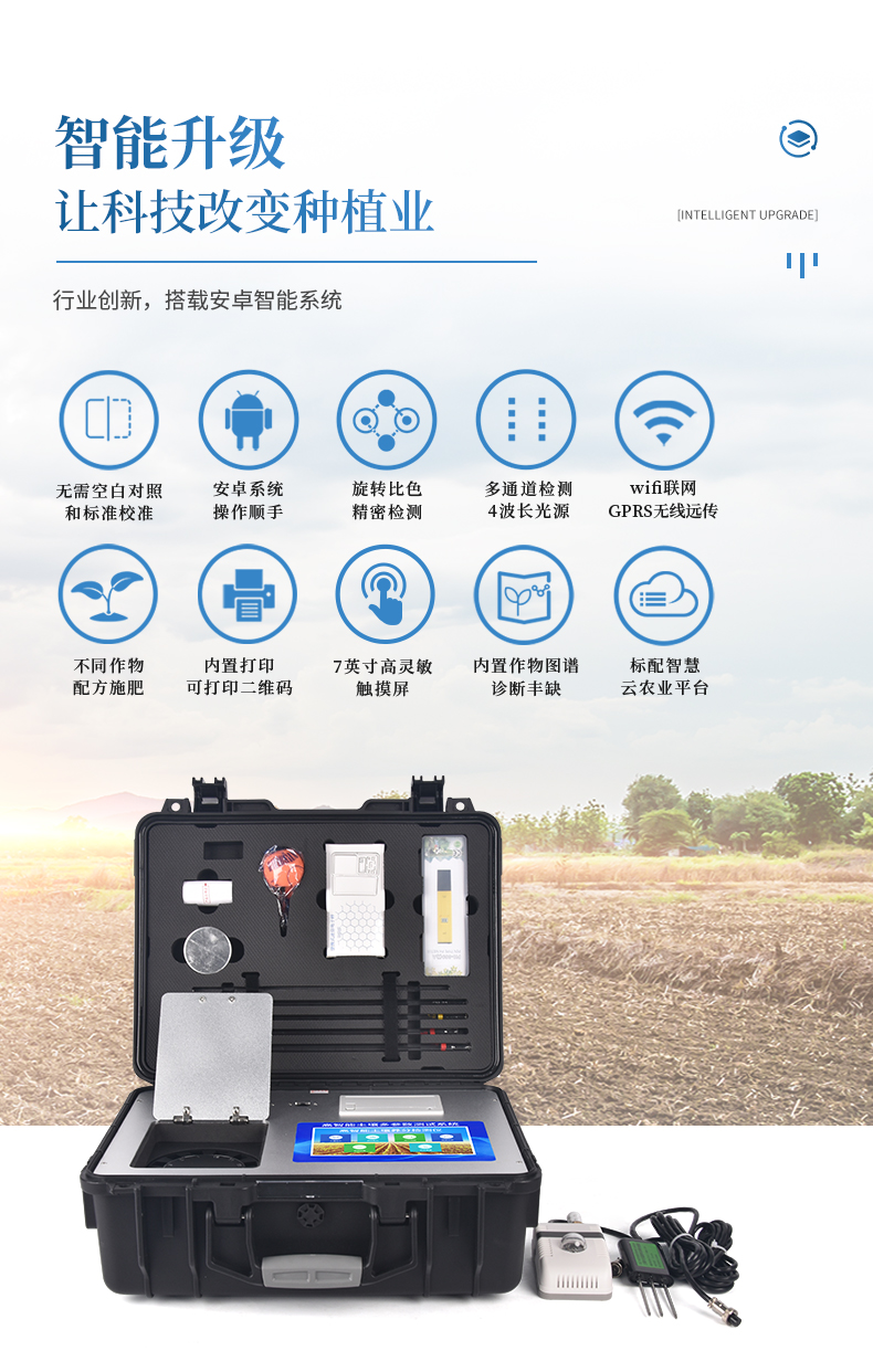 配套齊全:該儀器集藥、器、儀為一體,攜帶方便,相當(dāng)于一個(gè)小型移動(dòng)實(shí)驗(yàn)室,無(wú)需用戶(hù)自配附件,亦可靈活野外流動(dòng)測(cè)試。適于農(nóng)業(yè)服務(wù)部門(mén)或農(nóng)資經(jīng)銷(xiāo)商、高教院校、科研院所、合作社、肥料廠商、大種植戶(hù)測(cè)土施肥和鑒別肥料真假及環(huán)保檢測(cè)應(yīng)用。 檢測(cè)功能全:測(cè)試項(xiàng)目國(guó)內(nèi)外全面,除標(biāo)配試劑外,其他各類(lèi)藥劑均可加配選購(gòu)。 操作簡(jiǎn)便、速度快捷,配套整套附件及成品藥劑開(kāi)瓶即用,無(wú)須配置。 性能可靠:工作穩(wěn)定性?xún)?yōu)于國(guó)家標(biāo)準(zhǔn)JJG179-90指標(biāo)的6倍,重復(fù)性達(dá)到光柵型分光光度計(jì)指標(biāo)水平。