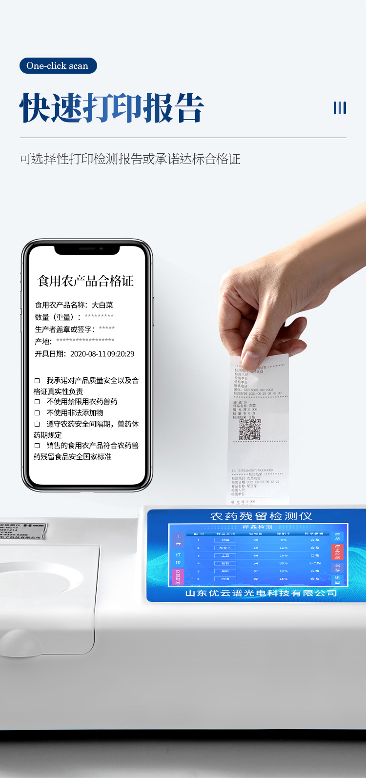 廣泛應用于主要用于蔬菜、水果、茶葉、糧食、農副產品等食品中有機磷和氨基甲酸酯類農藥殘留的快速檢測;此外還可用于果蔬茶生產基地和農貿批發銷售市場現場檢測,餐館、學校、食堂、家庭果蔬加工前的安全速測等。