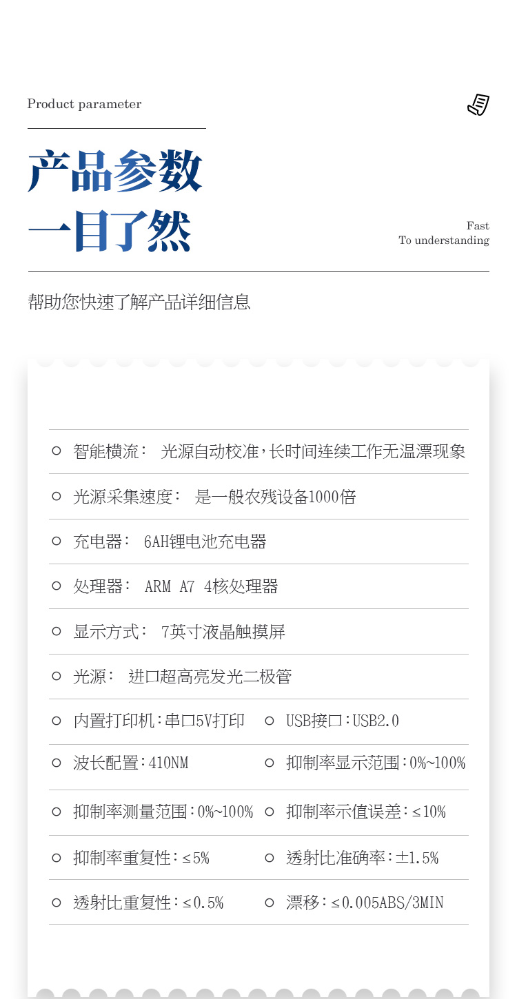 9、智能恒流穩壓,光強自動校準,長時間連續工作光源無溫漂現象。