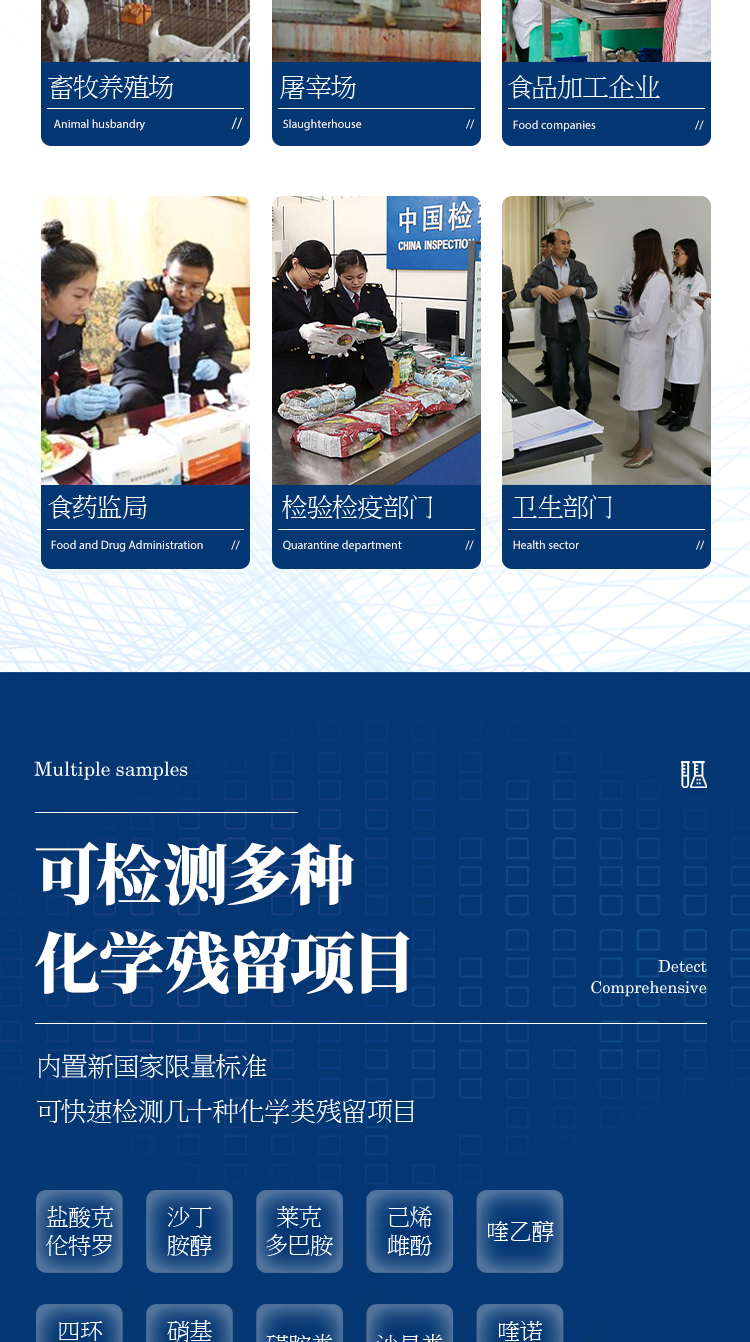 該氯霉素快速檢測(cè)系統(tǒng)設(shè)備為集成化食品安全快速檢測(cè)分析設(shè)備,廣泛應(yīng)用于養(yǎng)殖場(chǎng)、屠宰場(chǎng)、食品肉產(chǎn)品深加工企業(yè)、檢驗(yàn)檢疫部門、食藥監(jiān)局、衛(wèi)生部門、高教院校、科研院所、農(nóng)業(yè)部門等單位使用。