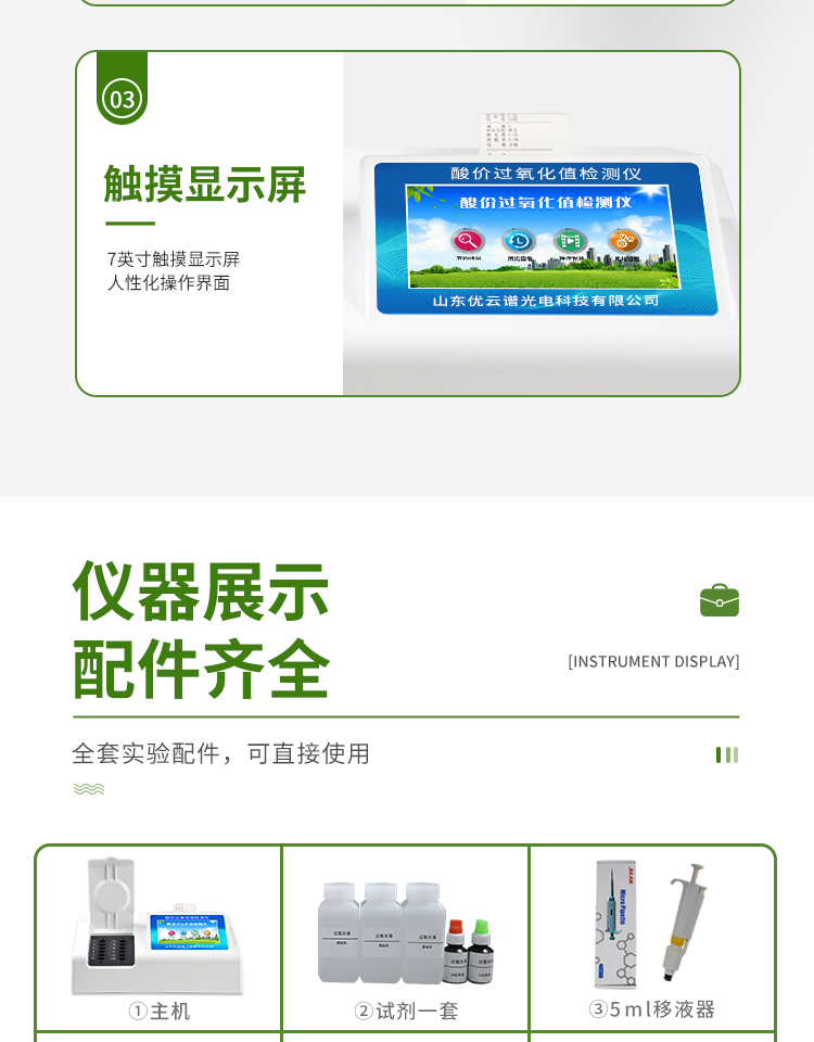 食用油過氧化值檢測儀為集成化油品快速檢測分析設備,能夠快速檢測食用植物油、食用豬油、花生油、葵花油、米糠油、食品、肉制品中的過氧化值含量;通過檢測可確定植物油是否符合國家標準或是否為劣質油、地溝油等。儀器預留其他項目檢測程序和端口,根據日后需求可方便的自主增加檢測項目。日后可升級為檢測水產品、面制品的綜合類型儀器。