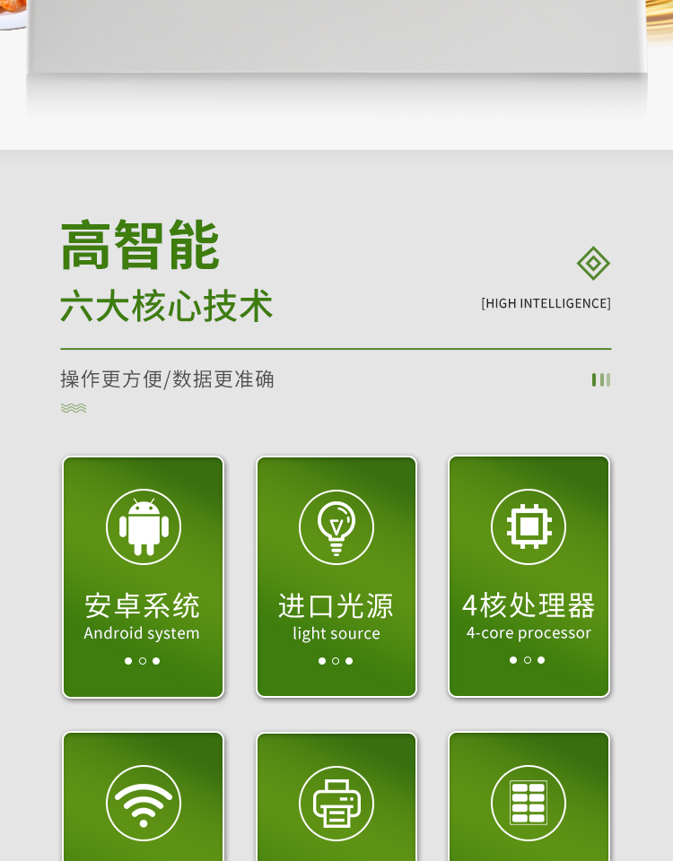 1、安卓智能操作系統,采用更加高效和人性化操作,儀器具有網線連接、wifi聯網上傳、GPRS無線遠傳功能,快速上傳數據。