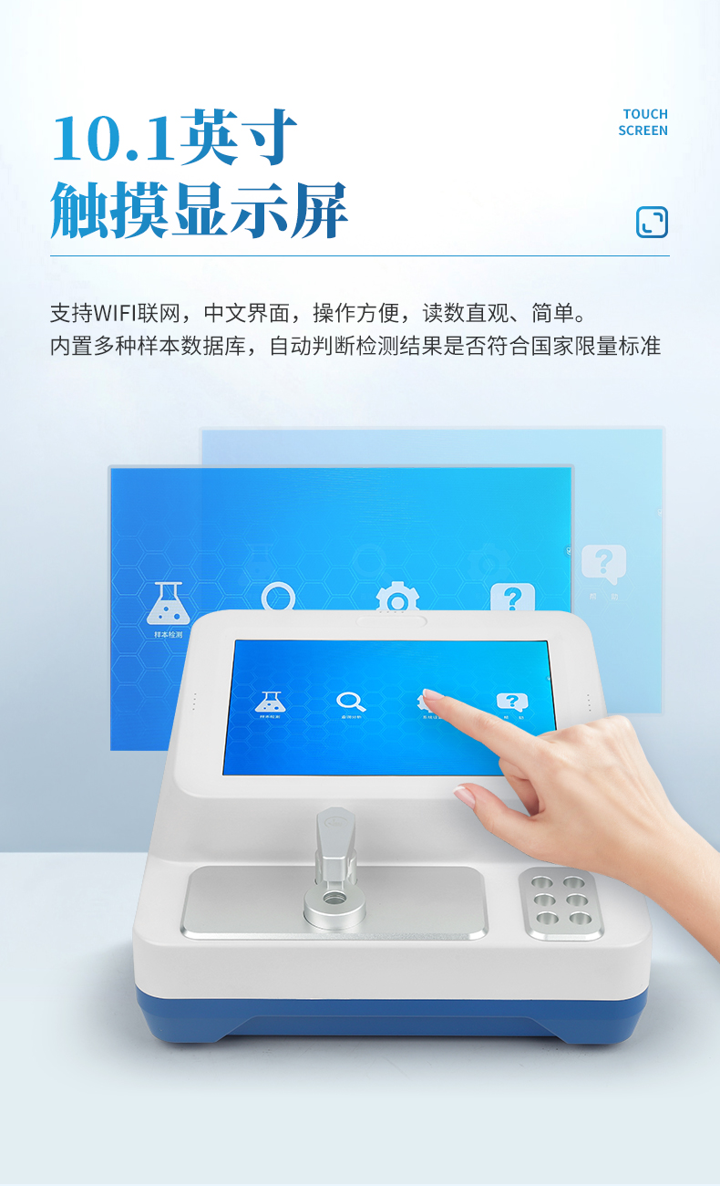 智能軟件系統(tǒng):內(nèi)置多種樣本數(shù)據(jù)庫,自動判斷檢測結(jié)果是否符合國家限量標(biāo)準(zhǔn);支持聯(lián)網(wǎng)遠(yuǎn)程升級,持續(xù)擴(kuò)展檢測項(xiàng)目。