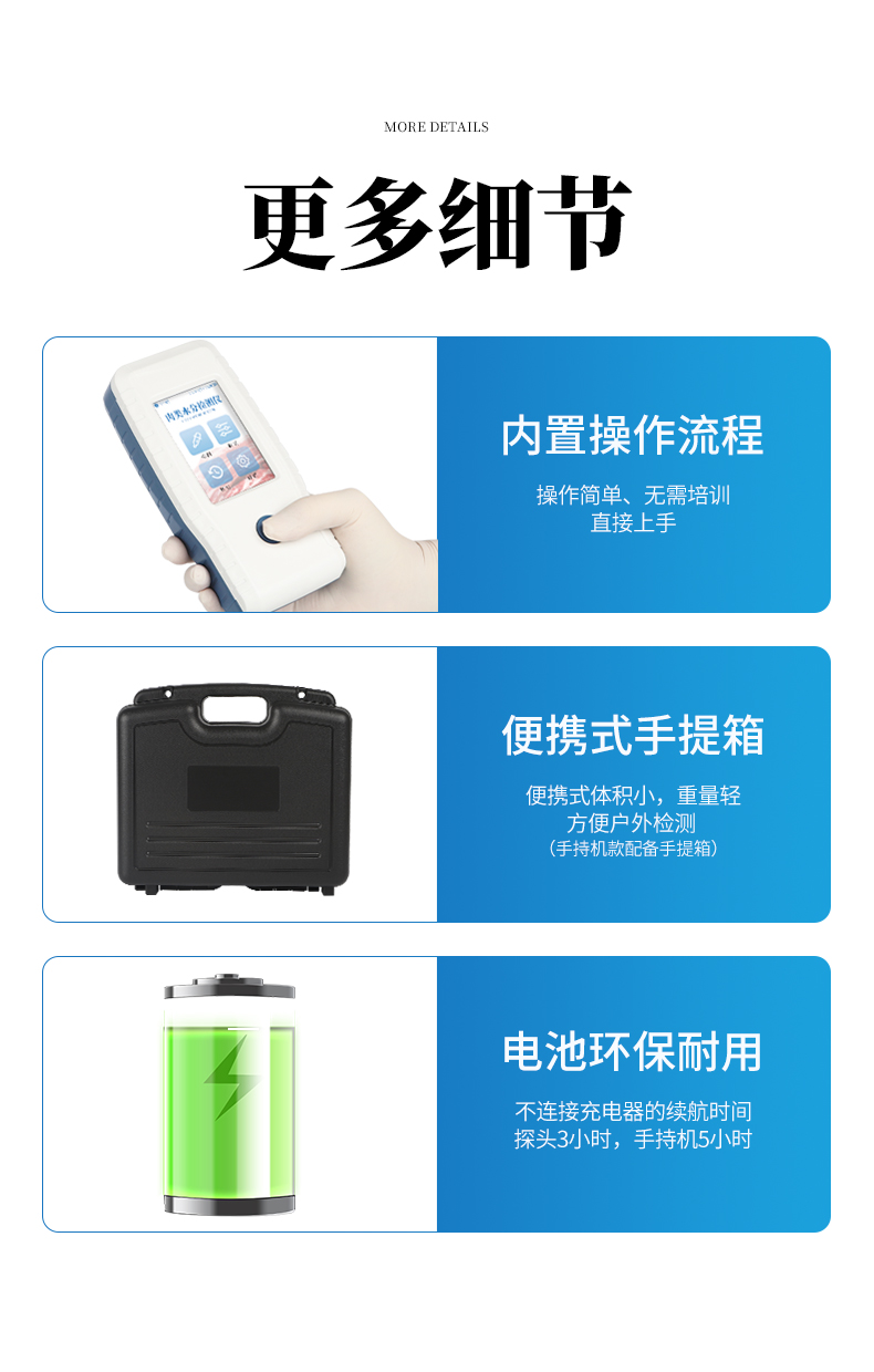 4. 不連接充電器的續航時間:探頭3小時,手持機5小時。