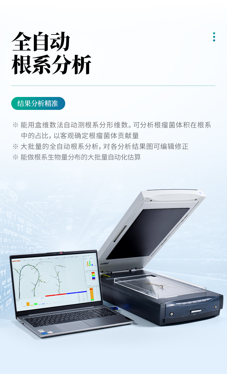根系分析系統用于洗根后專業根系分析,還可以用于根盒培養植物的根系表型分析,可以分析根系長度、直徑、面積、體積、根尖記數等,功能強大,操作簡單,軟件可分析植物根系的形態分析及根系的整體結構分布等,廣泛運用于根系形態和構造研究。