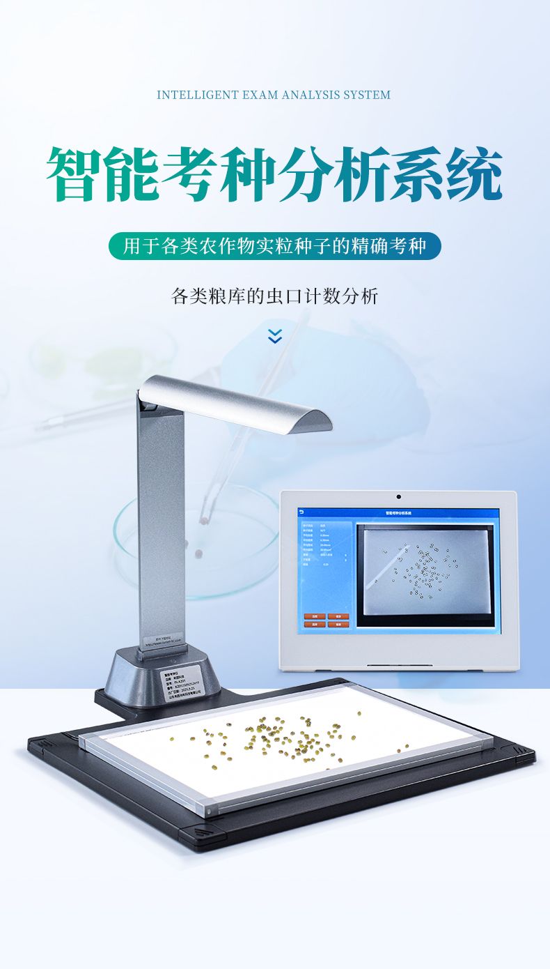 智能考種系統由三部分組成:1600萬高拍儀、背光裝置和裝有嵌入式軟件的平板。背光裝置采用的是高亮LED燈,外邊框使用鋁合金材質制成。軟件采用先進的圖像處理技術,根據距離變換原理、形態學、凸包檢測等技術綜合設計的一款嵌入式軟件。該設備主要應用在農業領域的田間作物測產及考種等方面,通過高拍儀拍攝的照片,軟件自動計算種子數量,種子的面積、周長、長度、寬度、長寬比等數據,根據天平所得的重量與種子的數量自動計算出千粒重;以列表和圖形的方式輸出結果,便于用戶查看與分析研究。本產品也可以手動對作物種子數量修正以確保計數精度、對數據進行保存,并且可以查看數據報表,最后可以將數據以Excel格式導出,或者通過WiFi數據上傳到儀器云數據管理系統從而實現數據統計,分析智能化。