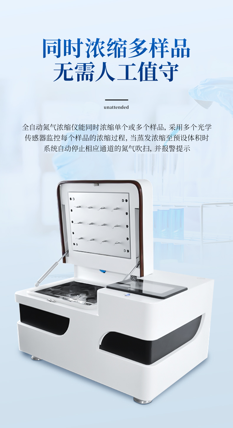 全自動多功能干式氮吹儀YP-QD4G是我司結合實驗室使用需求,從使用者方便安全快捷穩定等多角度共同開發的新型濃縮定容產品,產品擺脫了常規市場上利用水浴加熱揮發而導致樣品進行污染的弊端,確定樣品的安全性與準確性,具有無人值守、準確定容、大批量濃縮的特點,可多組數據儲存功能,實現了全自動化的定量及批量濃縮,濃縮全程,讓繁瑣的濃縮過程變得靈活、省心、高效和安全。
