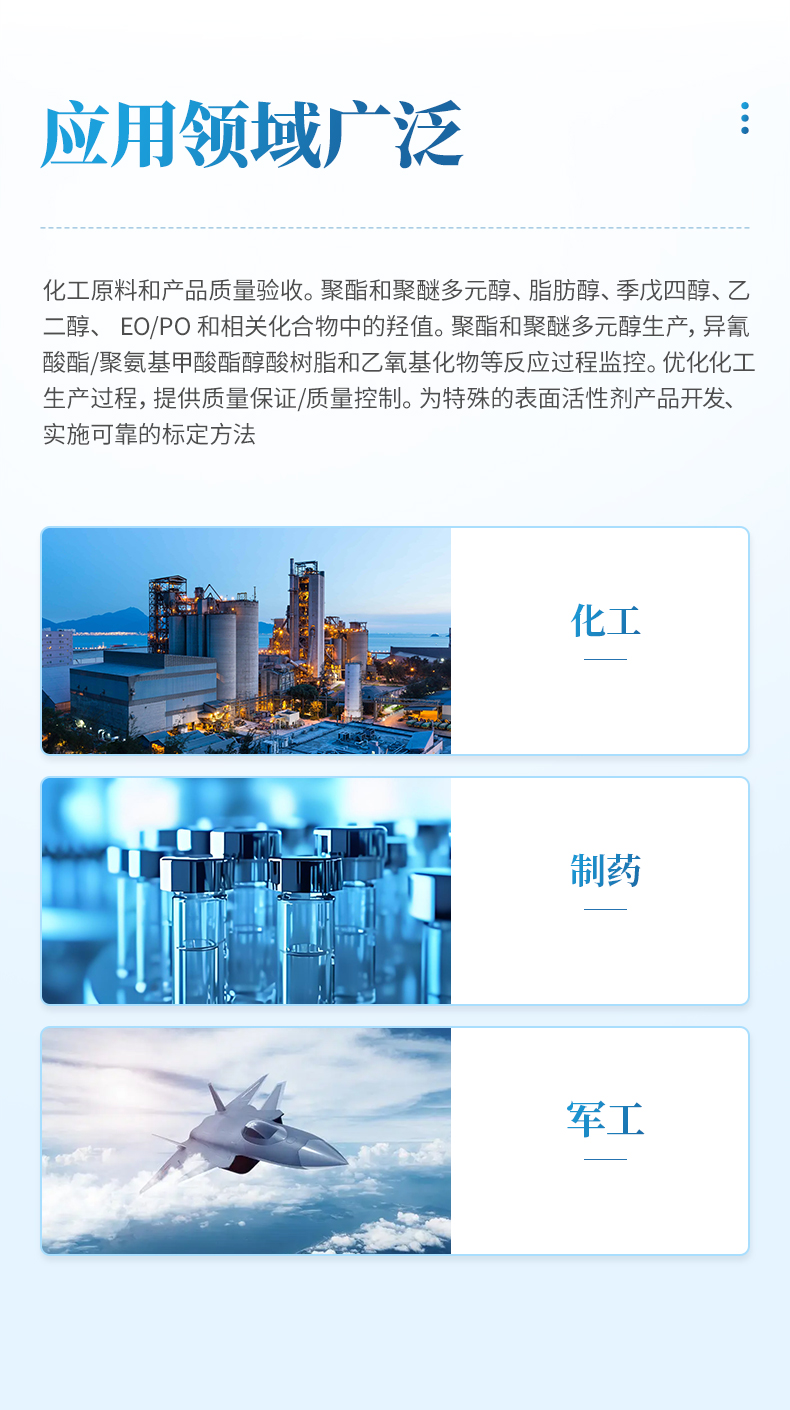 聚酯和聚醚多元醇、脂肪醇、季戊四醇、乙二醇、 EO/PO 和相關化合物中的羥值