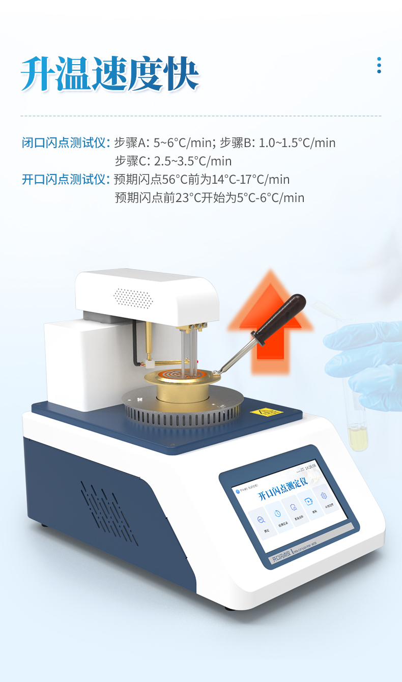 升溫速度 預期閃點56℃前為14℃-17℃/min;預期閃點前23℃開始為5℃-6℃/min.