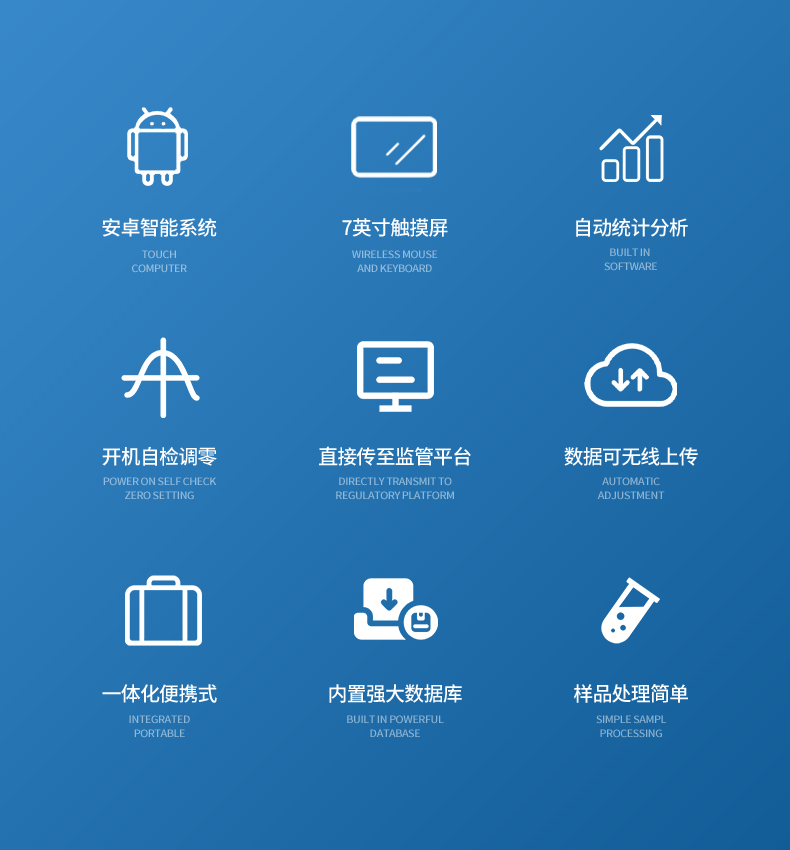 2、智能化程度高,儀器具有自檢功能:具有開機自檢和調(diào)零功能,具有自動檢測重復(fù)性功能。