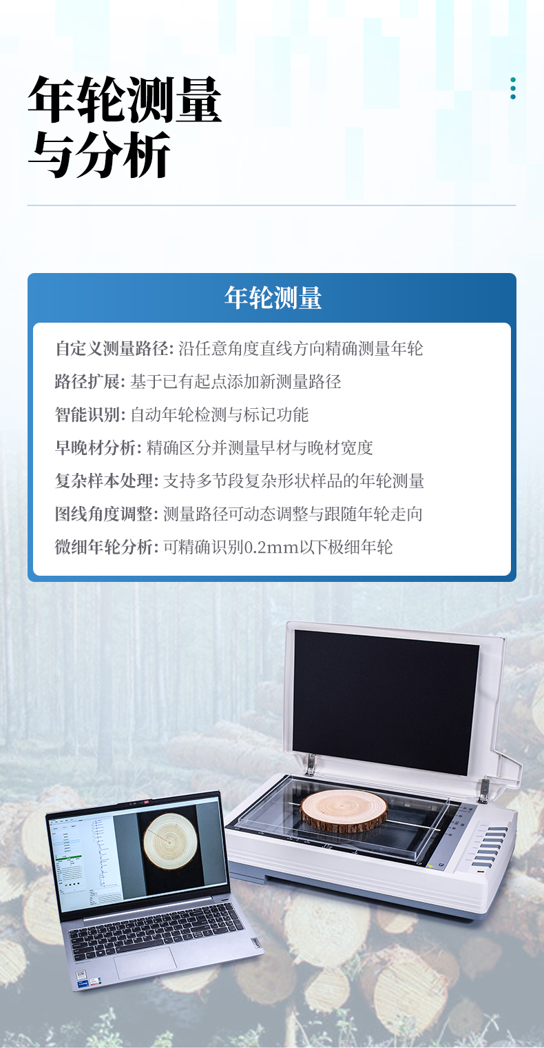 - 復雜樣本處理:支持多節段復雜形狀樣品的年輪測量