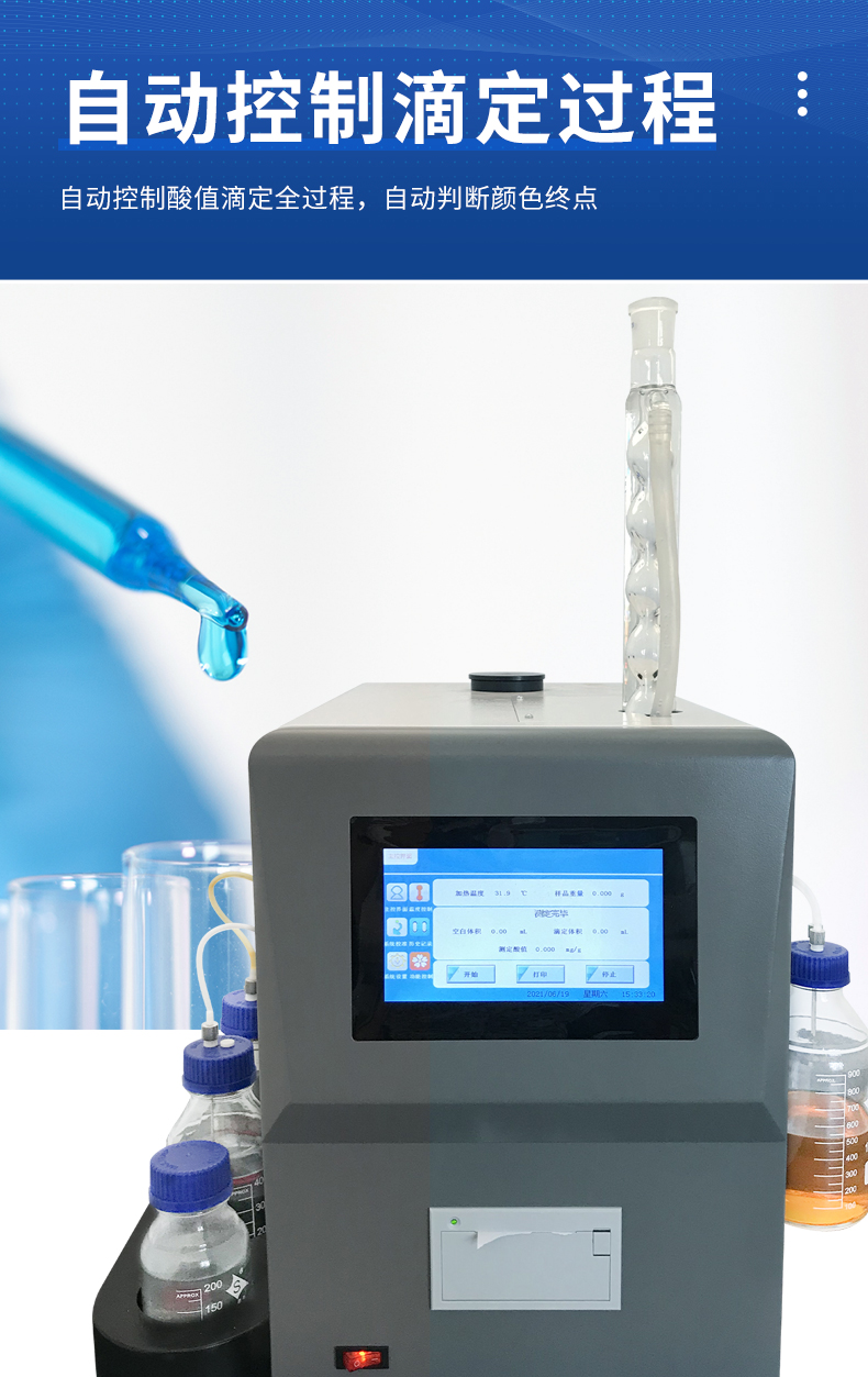 3、自動控制酸值滴定全過程,自動判斷顏色終點。