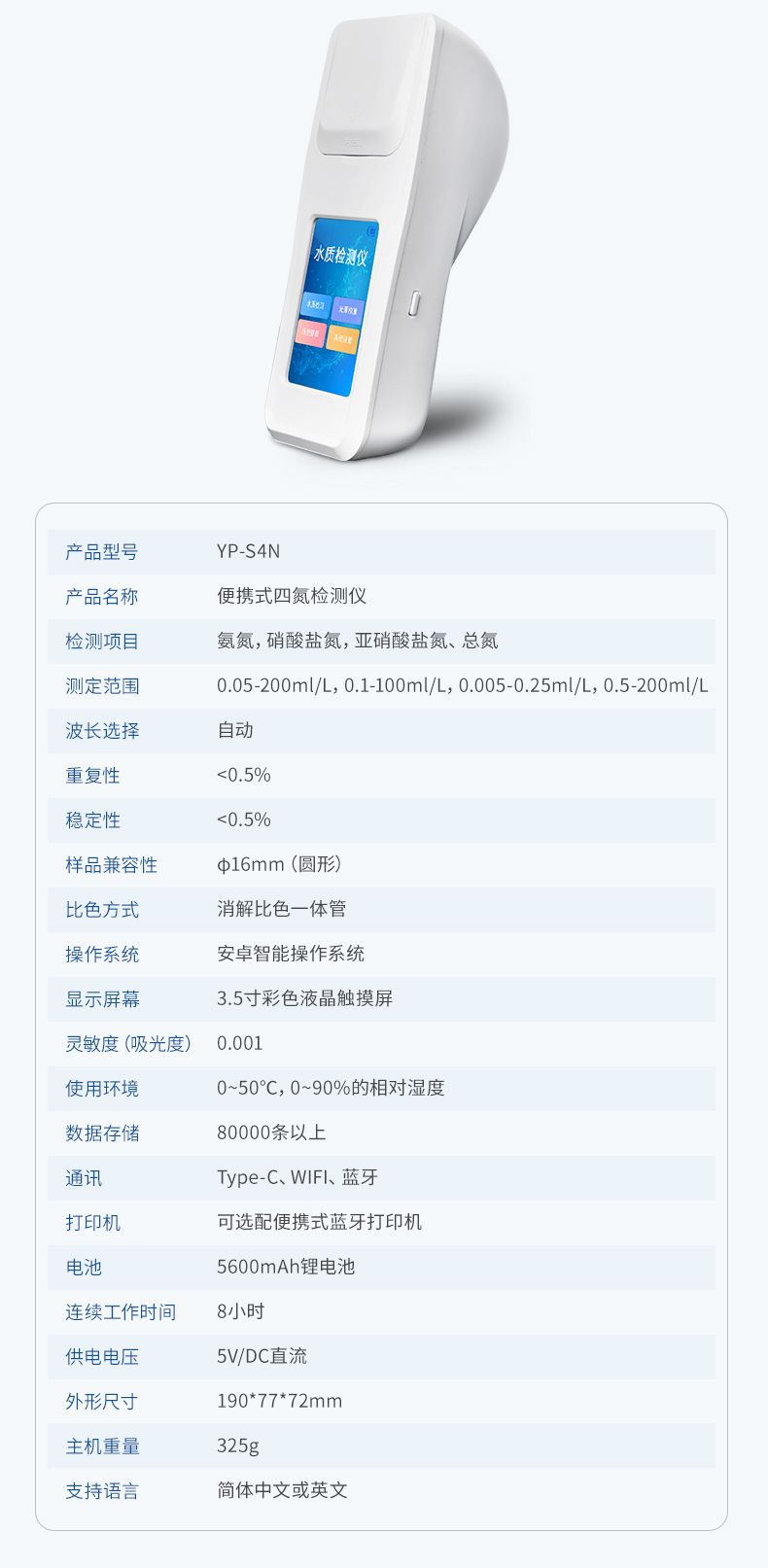 ⑥便攜式體積小,重量輕,方便戶外檢測;