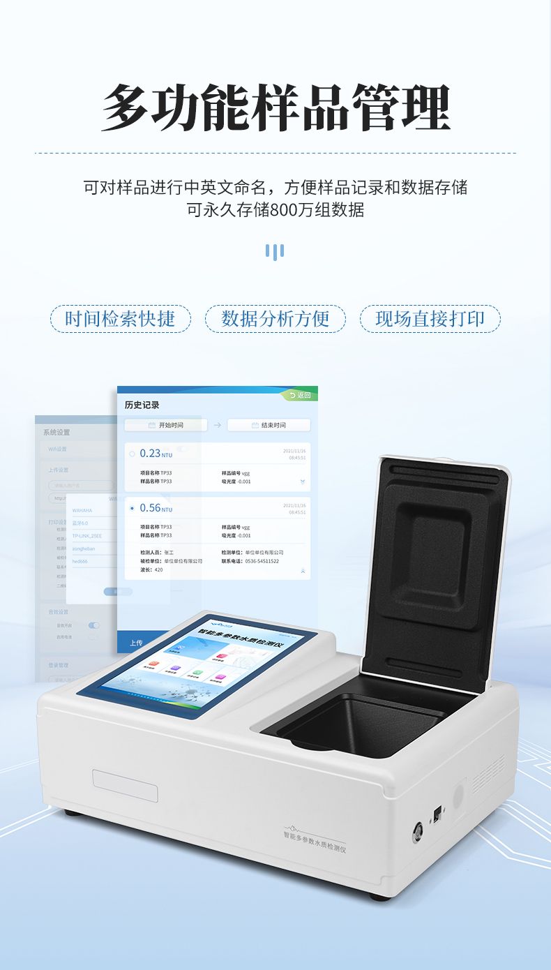 2.配置云監控平臺,檢測結果可直接無線傳至平臺,進行水質長短期分析,輔助管理;