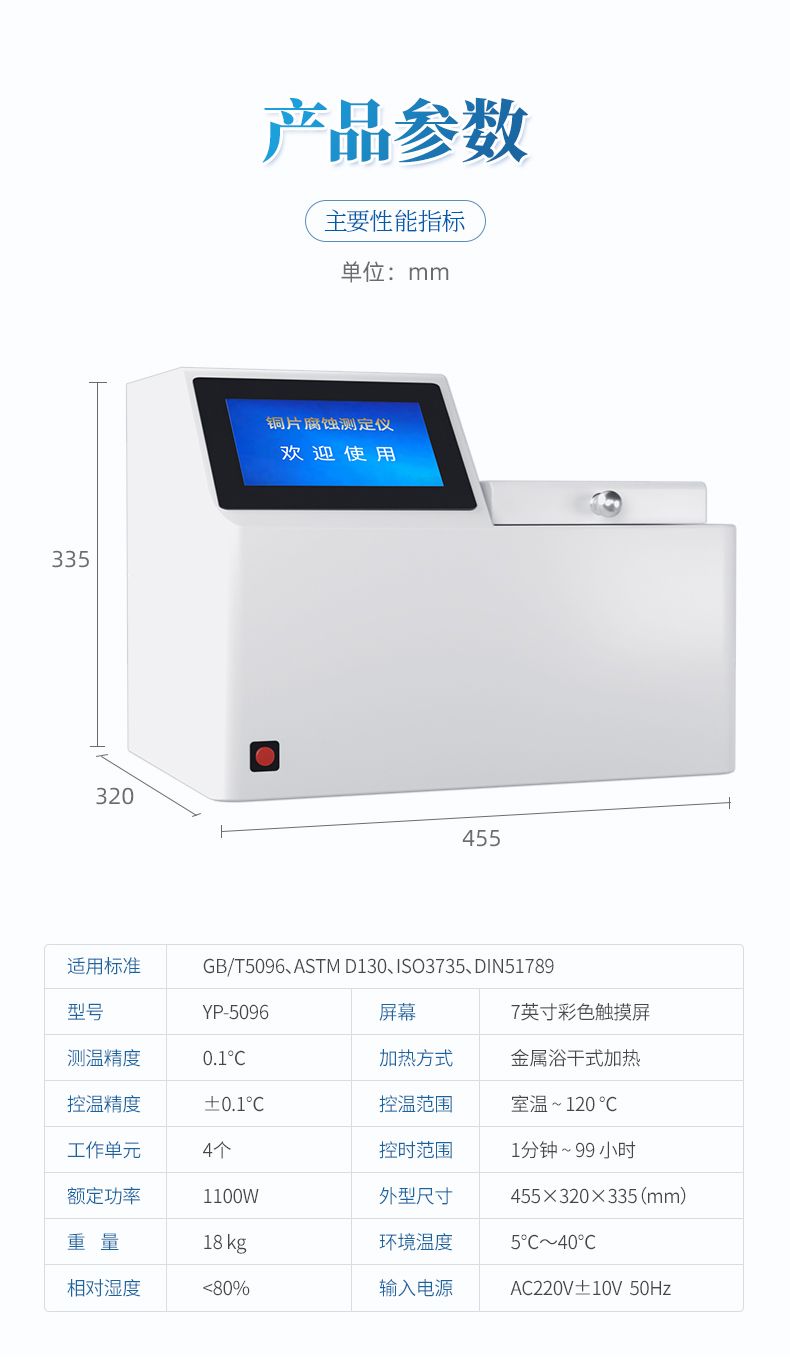 YP-5096石油產(chǎn)品銅片腐蝕試驗器采用先進的32位MCU,7英寸大屏幕液晶顯示,具有測溫精度高、升溫迅速、穩(wěn)定可靠、操作簡便、易于維護的優(yōu)點。本機適用于變壓器廠、供電部門、煉油廠、鐵路、航運、貯油站及商業(yè)部門對石油產(chǎn)品腐蝕性質(zhì)進行監(jiān)測和控制,進行快速分析的必要儀器。測量結(jié)果符合GB/T5096方法規(guī)范。