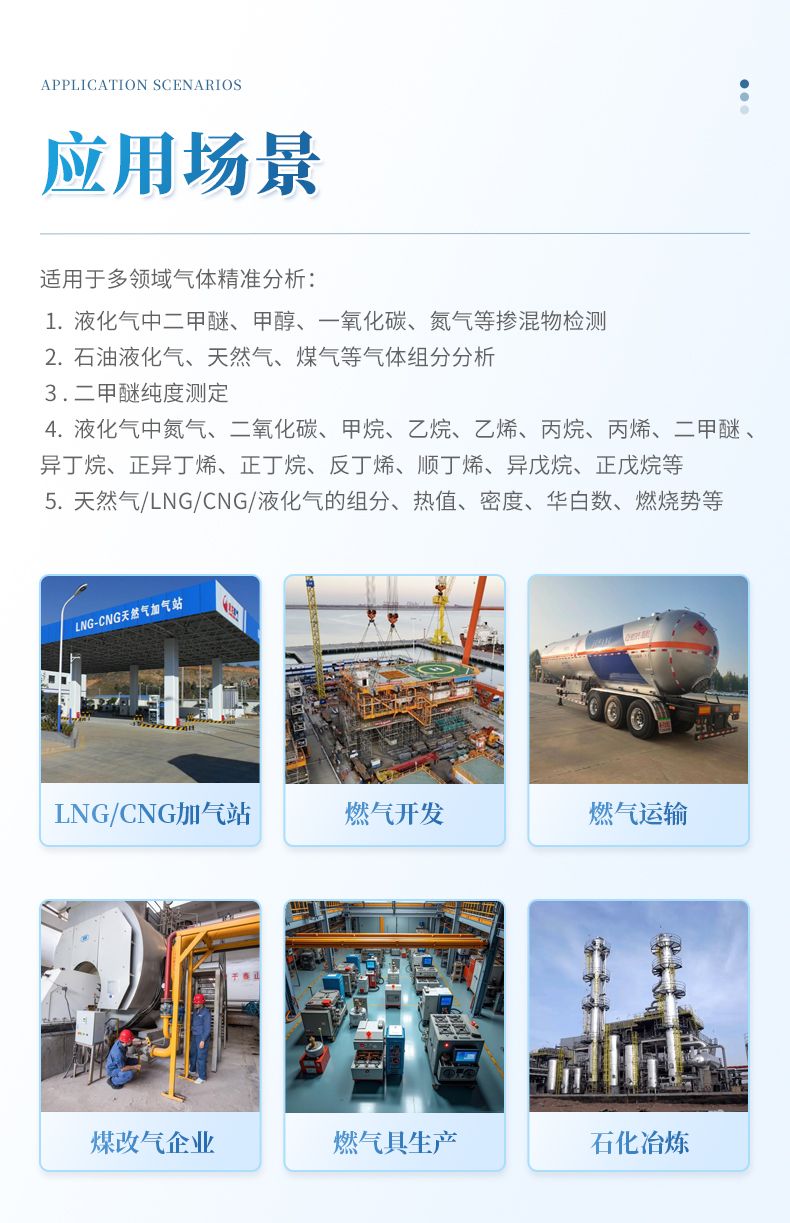 LPG LNG CNG加氣站、油田氣、煤層氣、礦井氣、頁(yè)巖氣、燃?xì)夤艿肋\(yùn)輸公司、燃?xì)膺\(yùn)輸公司、燃?xì)鈨?chǔ)備站、煤改氣企業(yè)、LNG點(diǎn)供、燃?xì)饩呱a(chǎn)企業(yè)、石油煉化、焦化廠、冶煉廠和供氣站等眾多行業(yè)。