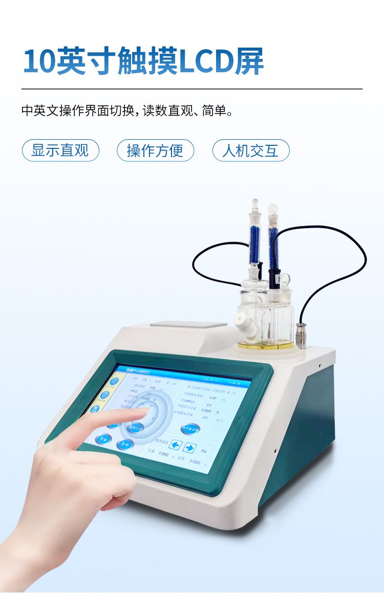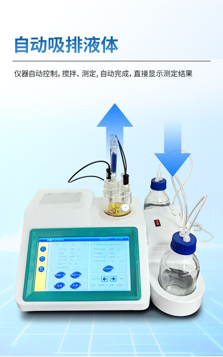 該儀器具有測定精度高、分析速度快、使用范圍廣、穩定可靠、操作簡單等優點。廣泛用于電力、石油、化工、農藥、醫藥等行業。樣品測定過程由儀器自動控制,攪拌、測定60秒左右自動完成,直接顯示測定結果;全密封滴定池瓶,避免試劑與人接觸,也避免環境濕度的影響;