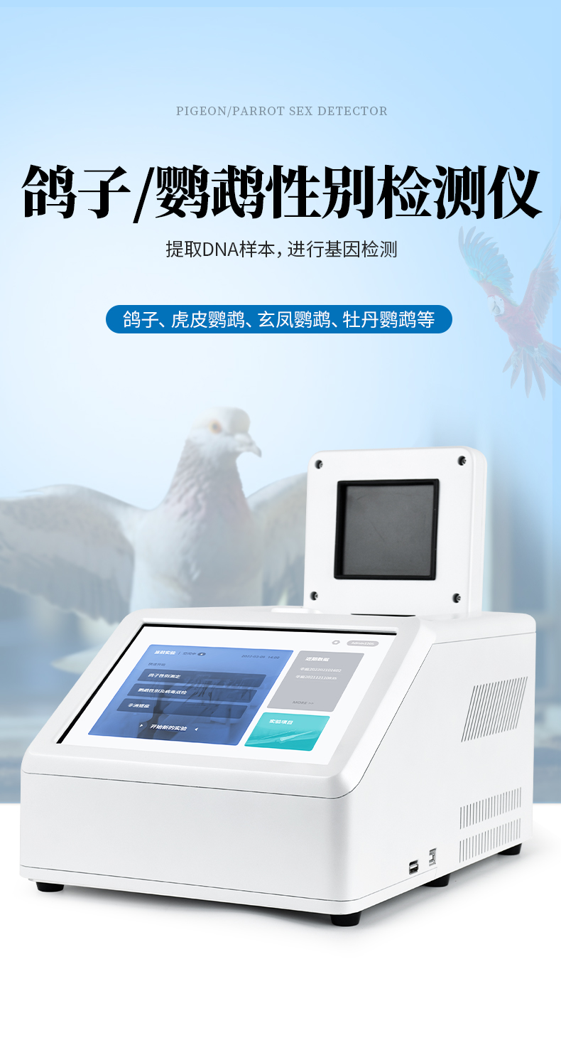 鸚鵡/鴿子性別檢測儀是實時檢測反應的儀器,主要由基因擴增熱循環系統、熒光實時檢測系統、微電路控制系統、計算機及應用軟件組成。其中兩個核心功能模塊:熱循環系統和熒光實時檢測系統。其中基因擴增熱循環系統工作原理與傳統基因擴增儀工作原理基本相同,采用半導體加熱制冷工作方式完成熱循環過程。熒光檢測系統主要有由熒光激發部件、光信號傳輸部件、熒光檢測部件、控制系統組成。