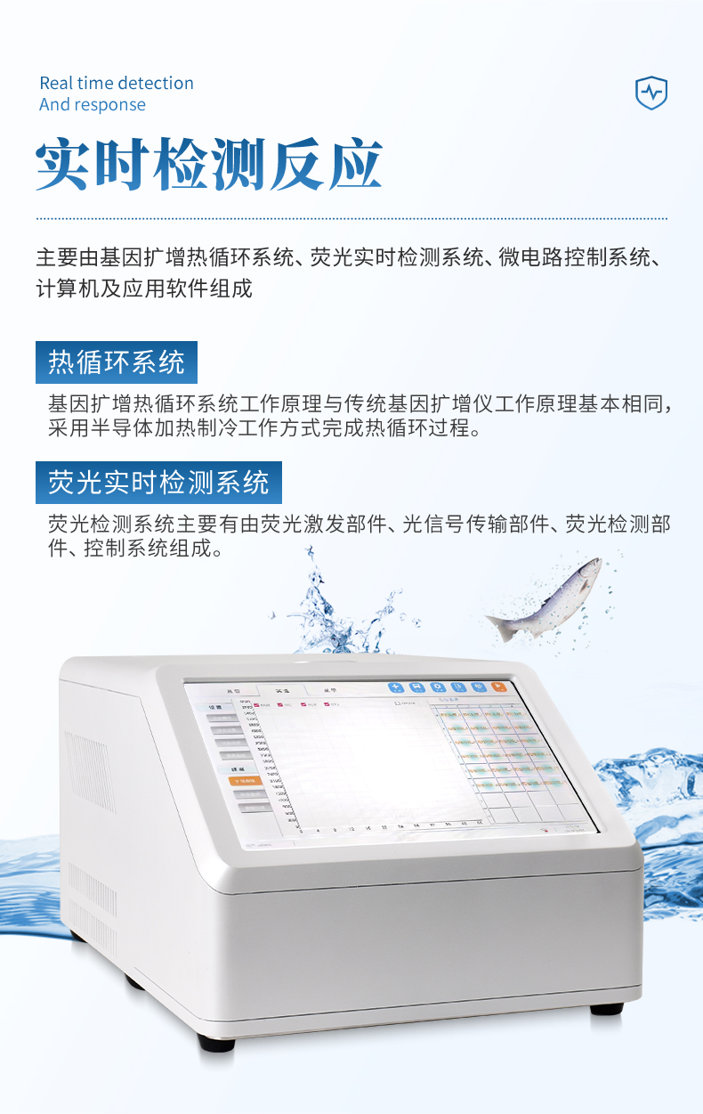 魚蝦病毒檢測儀采用實時定量聚合酶鏈?zhǔn)椒磻?yīng)(qPCR)技術(shù),是一種常用的分子生物學(xué)技術(shù),用于檢測水產(chǎn)養(yǎng)殖中的病毒。PCR檢測儀可以擴(kuò)增和檢測特定病毒的核酸序列,從而確定是否感染了特定的魚類或蝦類病毒。