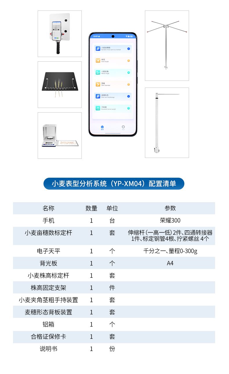 4)麥穗形態測定儀依托手機視覺技術,通過AI圖像矯正算法一鍵獲取穗長、小穗數等關鍵指標。全系統實現田間快速取樣、批量分析及數據互聯,為育種優化、產量預測和功能基因解析提供智能化解決方案。