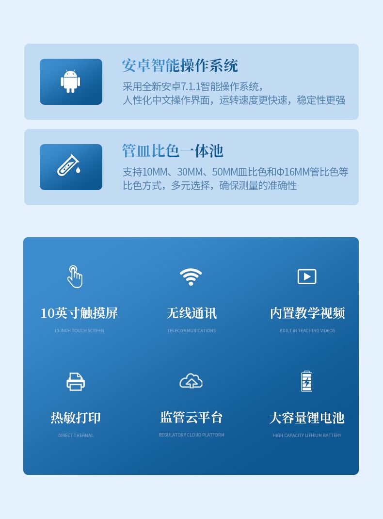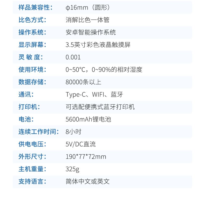 5、支持10mm、30mm、50mm皿比色和φ16mm管比色等比色方式,多元選擇,確保測量的準確性;