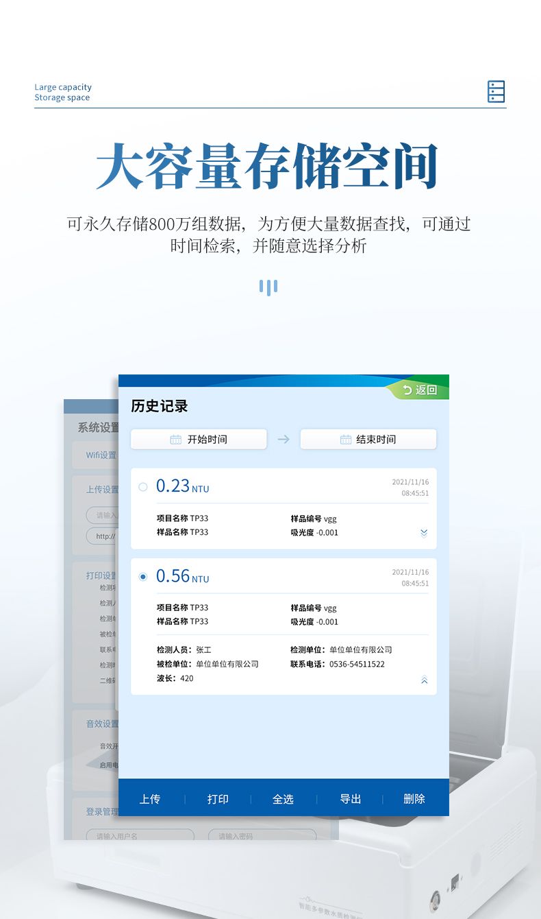 8、儀器可永久存儲800萬組數據,為方便大量數據查找,可通過時間檢索,并隨意選擇分析;