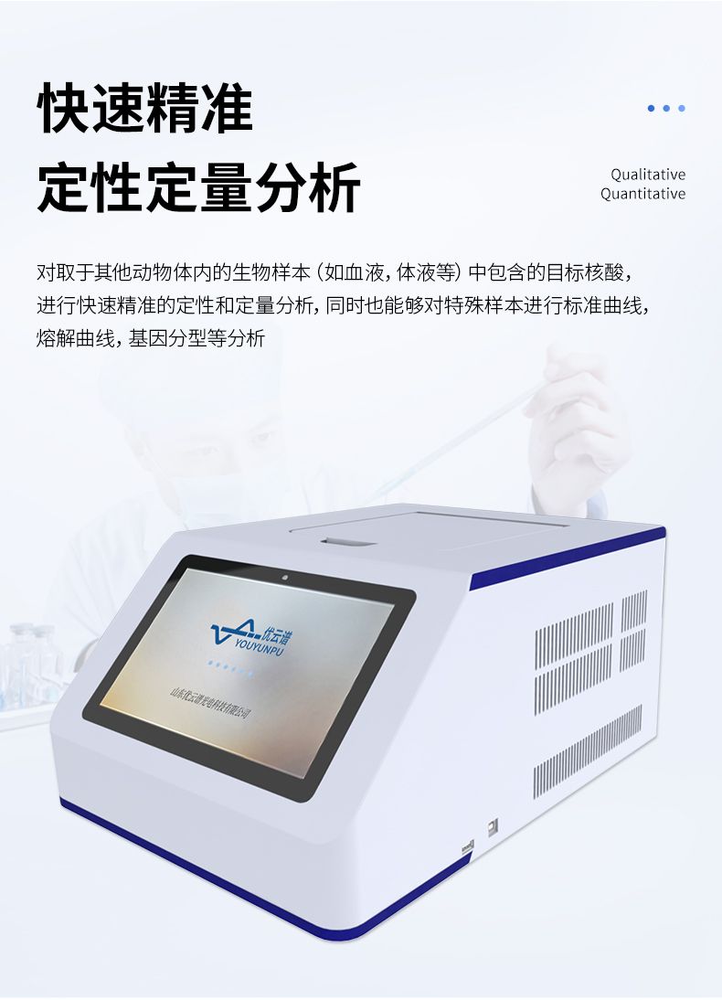 是一種非常便攜的方式提供8個(gè)樣本的實(shí)時(shí)熒光定量 PCR檢測(cè),適合動(dòng)植物疫病,食品安全,生物科研實(shí)驗(yàn)室等日 常低通量檢測(cè)需求。儀器可放置于快檢箱,保障現(xiàn)場(chǎng)快速分子 檢測(cè)需求。