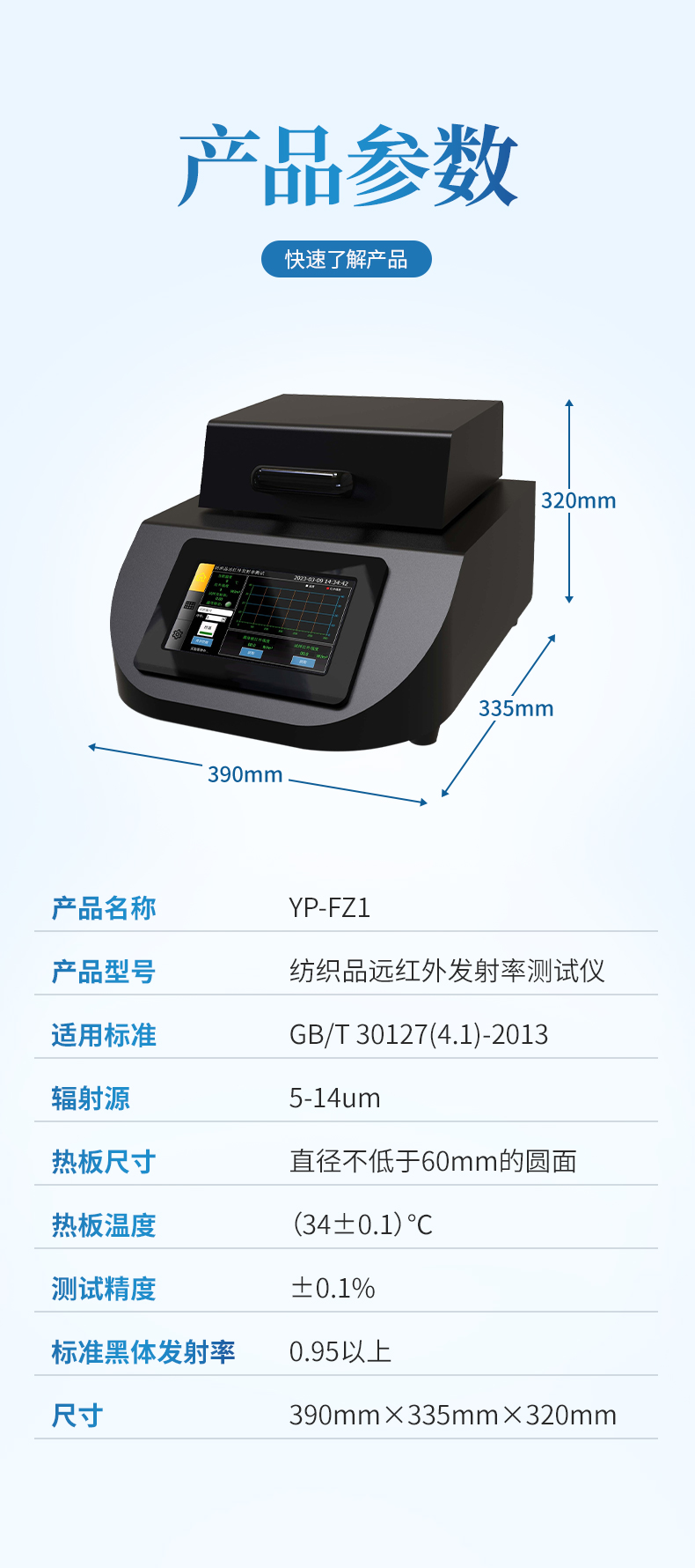 用于測量紡織品遠紅外線發射率。