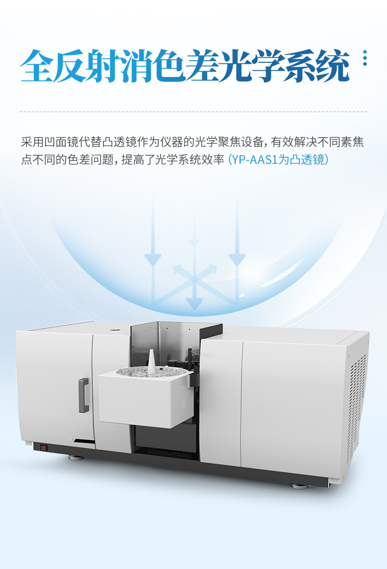 單石墨爐原子吸收分光光度計(jì)采用凹面鏡代替凸透鏡,有效解決了不同元素聚焦點(diǎn)不同產(chǎn)生的色差問(wèn)題,提高了光學(xué)轉(zhuǎn)換效率。