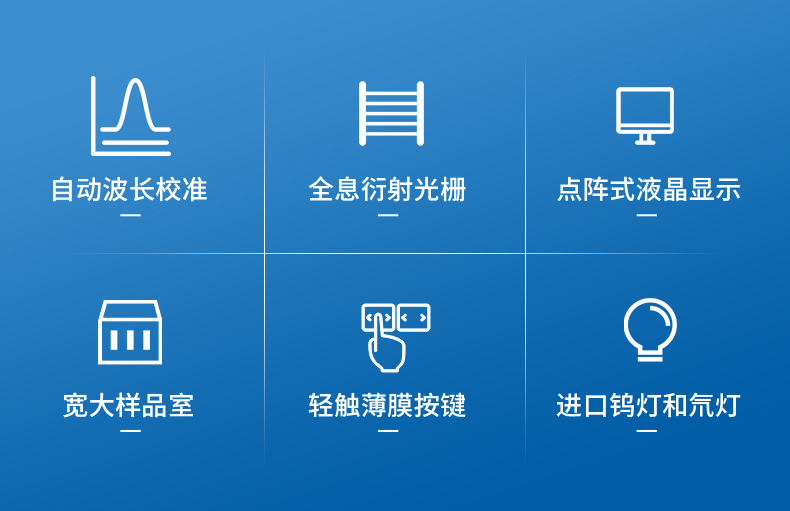 分光光度計具有定量測量、波長掃描、時間掃描、多波長測試、DNA蛋白質測試等高階功能,具有高精度、高分辨率、低噪聲、低雜散光的特點,特別適用于科學研究、醫藥檢驗、生命科學、環境監測、冶金化工等領域。